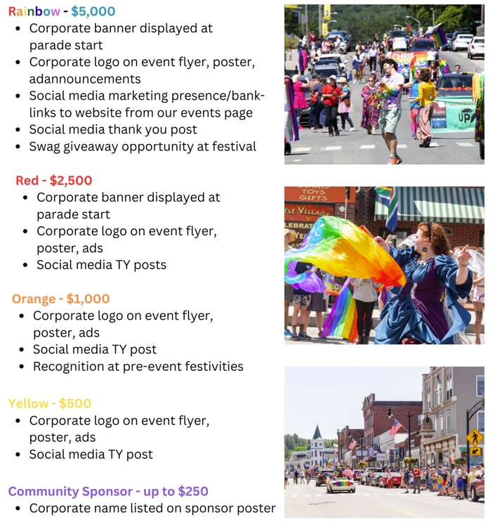Want to be a sponsor for Pride Fest? Explore sponsorship levels below and click the link to sign up! Become a Sponsor!